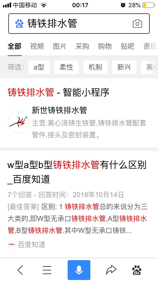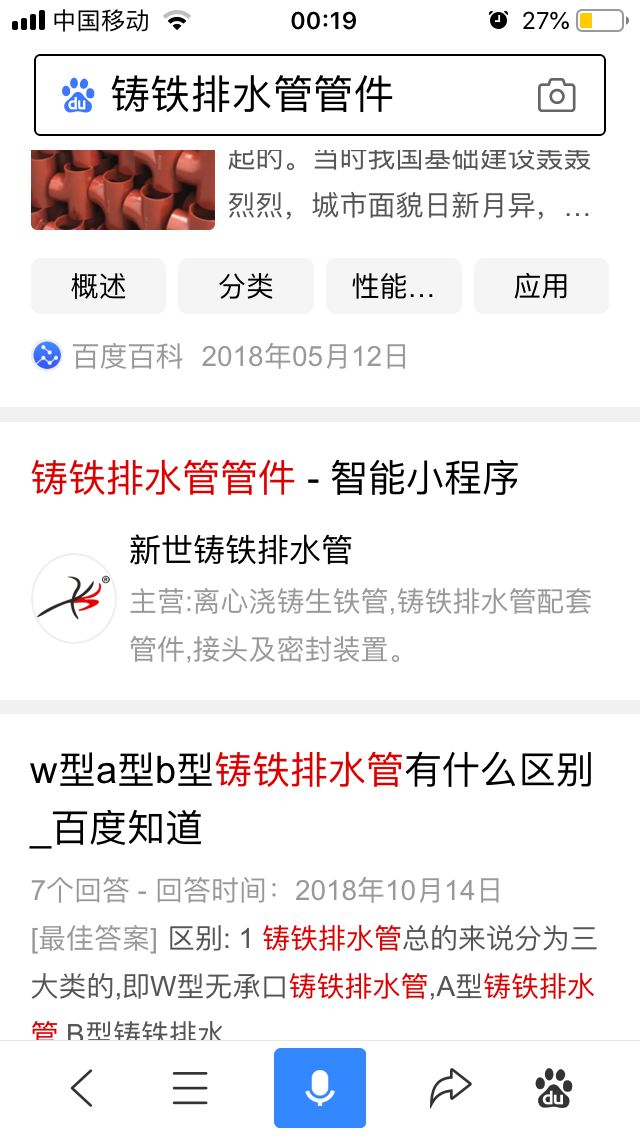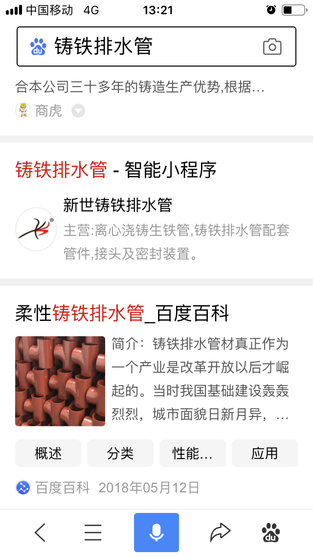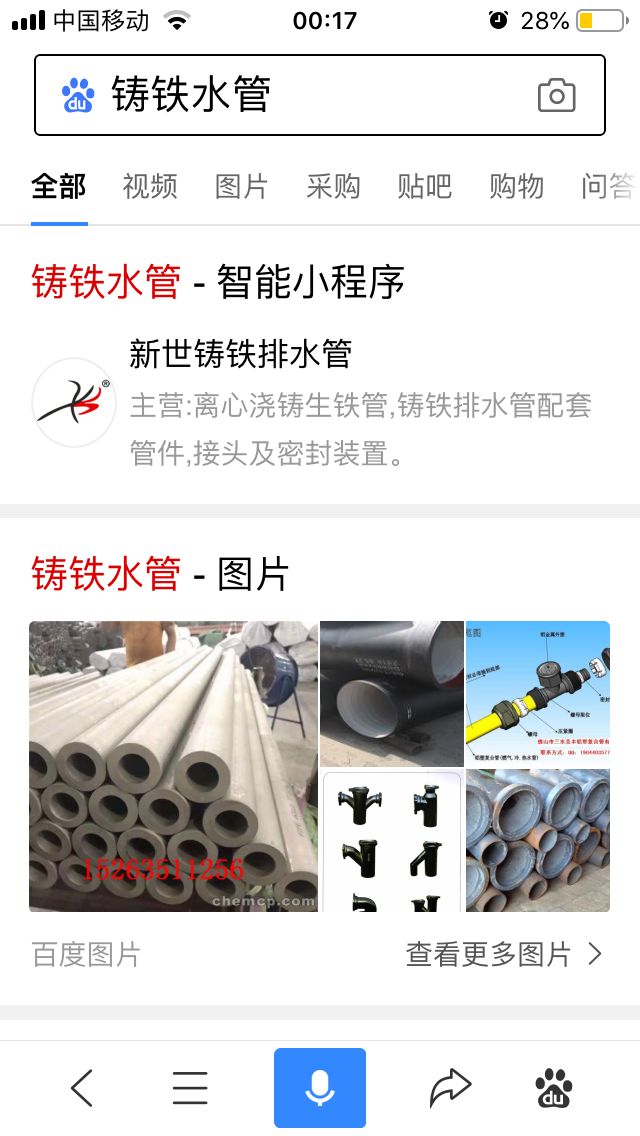 百度小程序:新世鑄鐵排水管、新世柔性鑄鐵管廠家、新世柔性鑄鐵排水管廠家、新世環(huán)氧鑄鐵管廠家、新世鑄鐵管件廠家、新世環(huán)氧排水管廠家、新世環(huán)氧樹脂鑄鐵管廠家、新世鑄鐵排水管件廠家