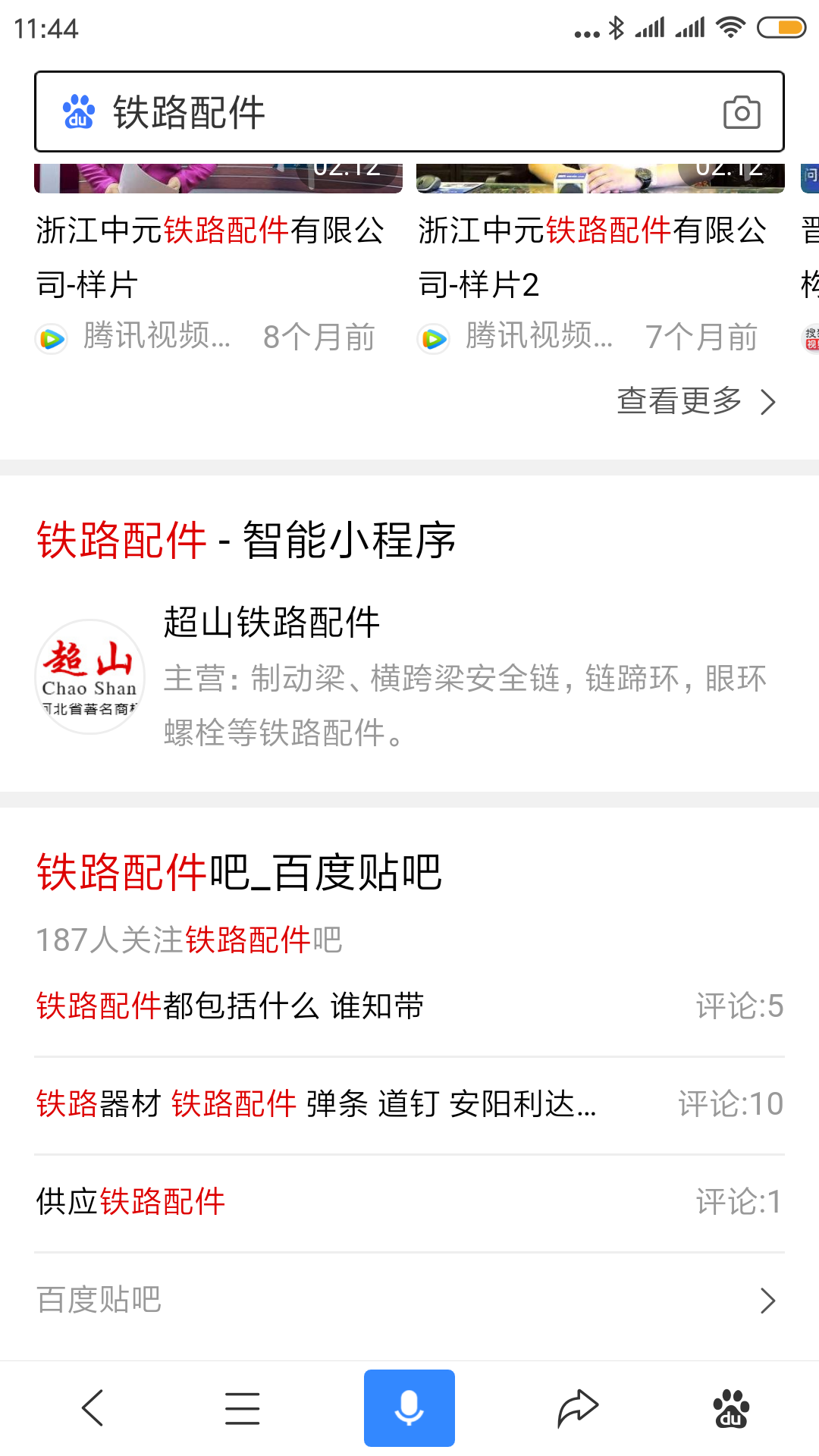 百度小程序:超山鐵路配件